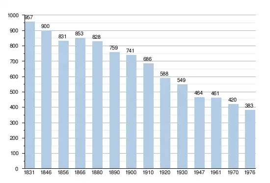 - Bronnen:NIS, Opm:1831 tot en met 1970=volkstellingen, 1976= inwoneraantal op 31 december