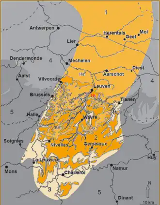 De formatie dagzoomt in Vlaams- en Waals-Brabant en het noorden van Namen en Henegouwen. In het noorden van Vlaams-Brabant en Antwerpen is de formatie in de ondergrond te vinden.