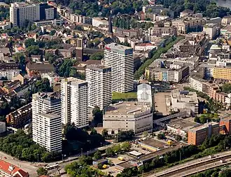 Tot het centrum hoort een vier 20 verdiepingen tellende woontorens, die een opvallend oriëntatiepunt vormen. Het winkelcentrum is middels een doorgang verbonden met het centraal station