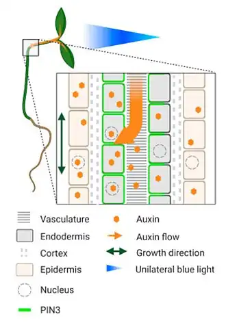- ↑ (en) Zhang, Kun-Xiao, et al. (29-07-2013). Blue-light-induced PIN3 polarization for root negative phototropic response in Arabidopsis. Gearchiveerd op 17 juli 2022. The Plant Journal -