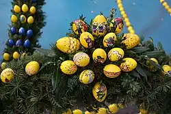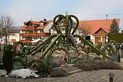 Rond Pasen worden de bronnen versierd met beschilderde eieren. Dit gebruik voert terug op een tekort aan water in deze streek, met name de hoogvlaktes. Bronnen werden gekoesterd en in het voorjaar schoongemaakt en onderhouden. Door de huidige watervoorziening via leidingen zijn de bronnen niet meer nodig. Het gebruik om ze te versieren is blijven bestaan. Bieberbach (zie foto's) heeft de grootste paasbron.