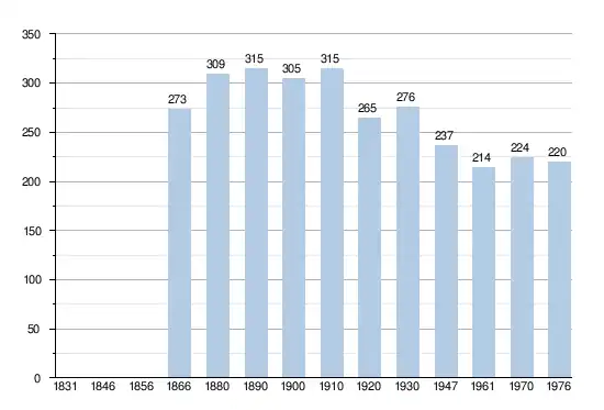 • Bronnen:NIS, Opm:1831 tot en met 1970=volkstellingen, 1976= inwoneraantal op 31 december