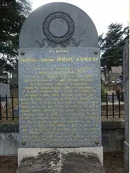Boissy d'Anglas stierf op 69-jarige leeftijd en werd begraven op het kerkhof van Annonay.