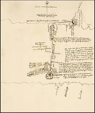 - ↑ De pagger was een vierkanten versterking met een pallisade van bamboe, met daarbinnen een aantal kleine verblijfplaatsen en een tiental kanonnen.