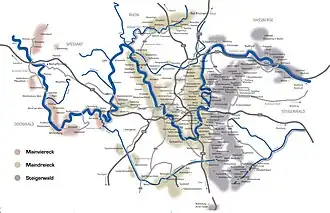 Oostelijk van de Maindreieck - tussen de rivieren Main en Aisch - ligt het Steigerwald waar vooral op de westhelling wijn verbouwd wordt op de daar aanwezige Keuperbodem. Er komen zeer mineraalrijke wijnen van vooral Silvaner-druiven vandaan.
