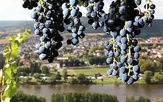 Ongeveer 19% van het wijngaardareaal is beplant met blauwe druiven.