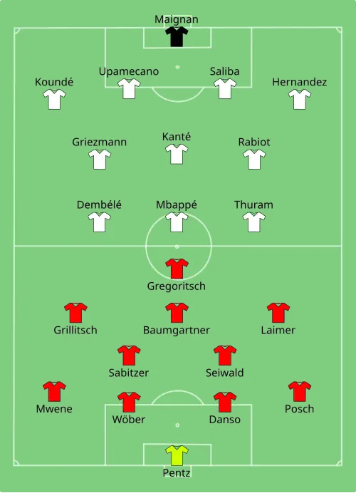 - ↑ Frankrijk wint nipt van Oostenrijk in groep Oranje, Mbappé valt uit met bebloede neus NOS, 18 juni 2024