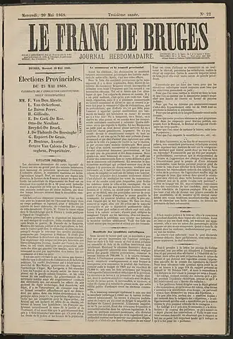 Le Franc de Bruges (1865-1876), katholiek-ultramontaans blad, uitgegeven door Honoré Vandenberghe-Denaux, met o.m. Guido Gezelle als redacteur.
