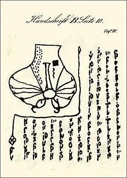 Kaart van de krater van de Merapi, november 1836, met eronder een afschrift van Junghuhns notities (in het Duits). -