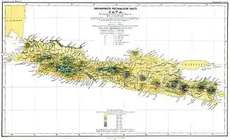 - ↑ a b c Uit de (zeldzame) meerkleurige uitgave van Junghuhns Topographischer Atlas zur Reise durch Java