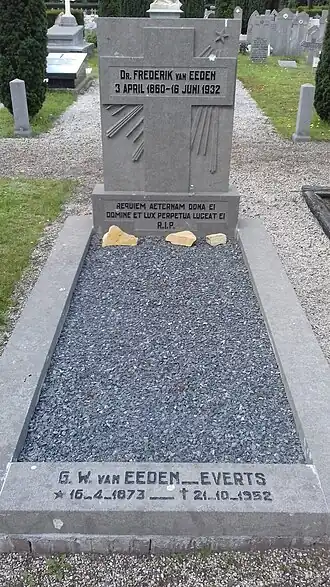 - In het graf waar Fredrik van Eeden, op de Oude R.K. Begraafplaats Bussum is later ook zijn tweede vrouw, G.W. van Eeden-Everts (Truida) begraven.