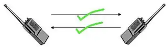 Bij spraakcommunicatie zijn beide zijden van het kanaal tegelijkertijd zender en ontvanger in full-duplexmode, waardoor de luisteraar de spreker in de rede kan vallen. Een voorbeeld van een full-duplexsysteem is de GSM.