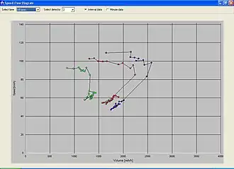 Daarnaast kan een fundamenteel diagram ook worden weergegeven door punten die de (gemiddelde) snelheid en intensiteit gedurende (bijvoorbeeld) 5 minuten representeren.