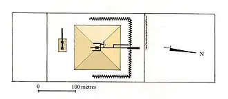 Het complex ligt ten zuidwesten van dat van Djoser en besloeg oorspronkelijk een gebied van 185 bij 262 meter; bij de bouw werd het vergroot tot 185 bij 545 meter. De noordelijke muur is goed bewaard; deze en was drie meter hoog toen de bouw gestaakt werd. Binnenin het complex liggen de resten van wat een trappiramide moest worden, die uit zeven trappen had moeten bestaan en ongeveer zeventig meter hoog zou zijn geworden. Er zijn echter alleen nog maar wat bouwlagen over en de grafkamer waar de sarcofaag ligt. De sarcofaag was niet beschadigd en verzegeld, maar bleek bij het openen leeg te zijn. Op de zegels stond de naam van de farao waardoor het complex aan hem kon worden toegeschreven. In het zuiden ligt een graf waar een kind in was begraven. Er zijn ook enkele belangrijke artefacten opgegraven zoals papyri en verschillende gouden voorwerpen.