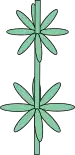 | tegenoverstaand tweerijig | bladeren tegenover elkaar staand, met de elkaar volgende paren recht onder elkaar |
