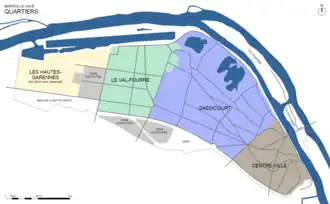 - ↑ a b (fr) Robert Rousselle, Un quartier de Mantes-la-Jolie: Gassicourt (Gemeente Mantes-la-Jolie) Geraadpleegd op 5 juni 2024.