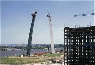 Het bouwwerk werd ontworpen door Eero Saarinen en Hannskarl Bandel. Het heeft de vorm van een wiskundige kettinglijn en is gebouwd met behulp van dubbelwandig roestvast staal en gewapend beton. De doorsnede is overal driehoekig. Het is 192 meter hoog en aan de basis ook 192 meter breed. De bouw duurde van 12 februari 1963 tot 28 oktober 1965 en kostte 15 miljoen dollar. Het is het op een na hoogste gebouw van de staat Missouri. Het hoogste is het One Kansas City Place in Kansas City. Binnenin het monument kunnen de bezoekers naar het bovenin gelegen observatiedek.