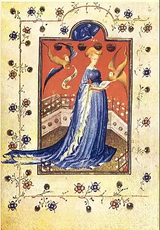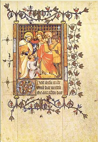 - ↑ (fr) Hours of Maria d’Harcourtis an illuminated book of hoursproduced in 1415 in Arnhem (the text) and Nijmegen (the illuminations) in the Duchy of Guelders.[1 It follows the Roman liturgy, with 6]. Giacobbe Giusti. Geraadpleegd op 10 december 2023.