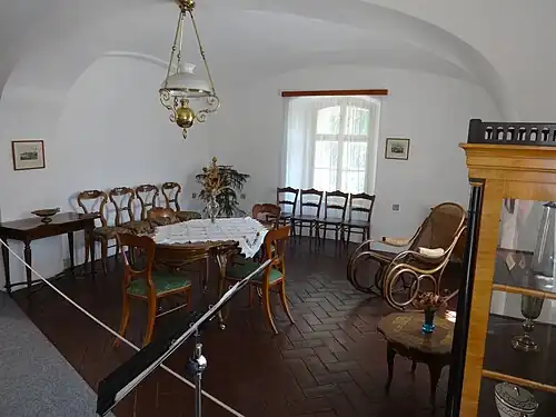 Er wordt een permanente collectie getoond over zijn leven, in het bijzonder over de eerste twaalf jaar die hij hier en in de nabije omgeving doorbracht. Uit die tijd is echter slechts één item overgeleverd, namelijk een gebedsboek dat hij kreeg van prins F.K. Lobkowicz (zijn moeder stamde uit het Huis Lobkowicz). In de collectie zijn niettemin nog andere authentieke bezittingen te vinden.