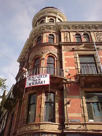 Vanaf 22 april 2007 was het gebouw (met uitzondering van de winkelruimte op de begane grond) gekraakt door een groep studenten die zichzelf profileerde onder de naam bewonersgroep Kosmos. Deze studenten hadden een etage van het pand ter beschikking gesteld aan de alternatieve kunstgalerie Schijnheilig. Hieruit vloeiden culturele activiteiten voort, zoals wekelijks pleindichten op zondagmiddag.