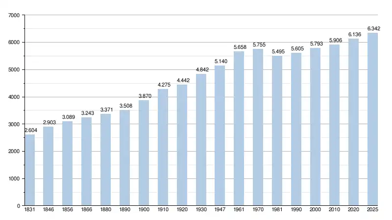 Alle historische gegevens hebben betrekking op de huidige gemeente, inclusief deelgemeenten, zoals ontstaan na de fusie van 1 januari 1977.