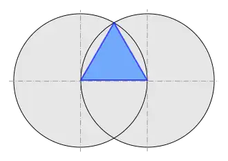 Een gelijkzijdige driehoek kan gemakkelijk met passer en liniaal worden geconstrueerd als een lijnstuk is gegeven. Teken daartoe de twee cirkels met het ene eindpunt van het lijnstuk als middelpunt die door het andere eindpunt van het lijnstuk gaan. De twee cirkels snijden in twee punten. Elk van deze punten kan als derde punt van de gelijkzijdige driehoek gelden.