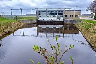 Direct ten zuidwesten van het gemaal staat poldermolen De Boezemvriend.