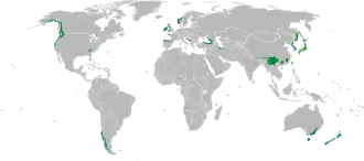 - Nieuw-Zeeland: Noordereiland en de westkust van Zuidereiland (klimaatzone Cfb), bijvoorbeeld Fiordland en de Westland temperate rainforests op het Zuidereiland