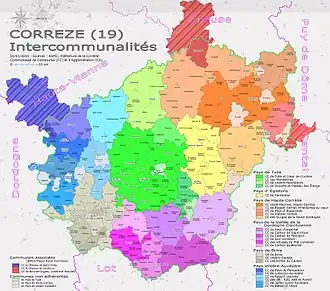 Sadroc - Saillac - Saint-Angel - Saint-Augustin - Saint-Aulaire - Saint-Bazile-de-la-Roche - Saint-Bazile-de-Meyssac - Saint-Bonnet-Avalouze - Saint-Bonnet-Elvert - Saint-Bonnet-la-Rivière - Saint-Bonnet-l'Enfantier - Saint-Bonnet-les-Tours-de-Merle - Saint-Bonnet-près-Bort - Saint-Cernin-de-Larche - Saint-Chamant - Saint-Cirgues-la-Loutre - Saint-Clément - Saint-Cyprien - Saint-Cyr-la-Roche - Saint-Éloy-les-Tuileries - Saint-Étienne-aux-Clos - Saint-Étienne-la-Geneste - Saint-Exupéry-les-Roches - Sainte-Féréole - Sainte-Fortunade - Saint-Fréjoux - Saint-Geniez-ô-Merle - Saint-Germain-Lavolps - Saint-Germain-les-Vergnes - Saint-Hilaire-Foissac - Saint-Hilaire-les-Courbes - Saint-Hilaire-Luc - Saint-Hilaire-Peyroux - Saint-Hilaire-Taurieux - Saint-Jal - Saint-Julien-aux-Bois - Saint-Julien-le-Pèlerin - Saint-Julien-le-Vendômois - Saint-Julien-Maumont - Saint-Julien-près-Bort - Sainte-Marie-Lapanouze - Saint-Martial-de-Gimel - Saint-Martial-Entraygues - Saint-Martin-la-Méanne - Saint-Martin-Sepert - Saint-Merd-de-Lapleau - Saint-Merd-les-Oussines - Saint-Mexant - Saint-Pantaléon-de-Lapleau - Saint-Pantaléon-de-Larche - Saint-Pardoux-Corbier - Saint-Pardoux-la-Croisille - Saint-Pardoux-le-Neuf - Saint-Pardoux-le-Vieux - Saint-Pardoux-l'Ortigier - Saint-Paul - Saint-Priest-de-Gimel - Saint-Privat - Saint-Rémy - Saint-Robert - Saint-Salvadour - Saint-Setiers - Saint-Solve - Saint-Sornin-Lavolps - Saint-Sulpice-les-Bois - Saint-Sylvain - Saint-Viance - Saint-Victour - Saint-Ybard - Saint-Yrieix-le-Déjalat - Salon-la-Tour - Sarran - Sarroux - Segonzac - Ségur-le-Château - Seilhac - Sérandon - Sérilhac - Servières-le-Château - Sexcles - Sioniac - Sornac - Soudaine-Lavinadière - Soudeilles - Soursac