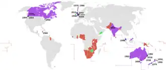 Momenteel zijn 72 teams gerechtigd om deel te nemen. Dit zijn de 54 onafhankelijke landen die lid zijn van het Gemenebest, waarbij de vier thuislanden Engeland, Noord-Ierland, Schotland en Wales van het moederland het Verenigd Koninkrijk ieder deelnemen met een eigen team, evenals de Britse kroongebieden Guernsey, Jersey en Man. Daarnaast nemen nog twaalf overzeese gebiedsdelen van een van de lidstaten deel. Zes landen hebben aan alle edities van de Gemenebestspelen deelgenomen; dit zijn Australië, Canada, Engeland, Nieuw-Zeeland, Schotland en Wales. Noord-Ierland ontbrak alleen in 1950.