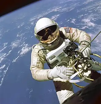 De ruimtewandeling die Edward White uitvoerde was de eerste ruimtewandeling door een Amerikaan. Het luik van de Gemini 4 werd 4 uur en 18 minuten na de lancering geopend, en 12 minuten later ging White naar buiten. hij was nog wel met een "umbulical cord" aan zijn ruimtepak met het ruimteschip verbonden. Gezagvoerder James McDivitt maakte vanuit het ruimtevaartuig foto's van de in de ruimte zwevende White. Deze iconische foto's van de astronaut aan zijn "navelstreng" werden over de hele wereld gepubliceerd. White kon manoeuvreren met behulp van een gaspistool, dat fungeerde als een soort stuwraketje. Hij kon zichzelf in een bepaalde richting bewegen door met het gaspistool precies de andere kant op te schieten. Het was de bedoeling dat de ruimtewandeling 9 minuten zou duren, maar White keerde pas terug nadat hij 20 minuten buiten was geweest. In totaal duurde de ruimtewandeling 36 minuten (de tijd tussen openen en sluiten van het luik). Deze ruimtewandeling was haastig in het vluchtschema opgenomen, omdat enkele maanden eerder tijdens de vlucht van de Voschod 2 de Rus Alexei Leonov als eerste in de geschiedenis in de ruimte wandelde.