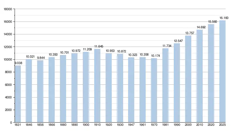 Alle historische gegevens hebben betrekking op de huidige gemeente, inclusief deelgemeenten, zoals ontstaan na de fusie van 1 januari 1977.
