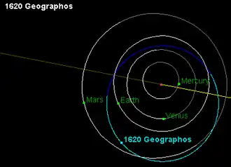 Geographos is een Marskruisende planetoïde en is ook een Aardscheerder. In 1994 naderde hij het dichtst de Aarde in 2 eeuwen.