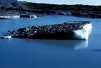 Opvallend is ook de soms enorme grootte van de rotsblokken die door de Maas werden meegevoerd: blokken met een doorsnede van bijna een meter zijn geen uitzondering. Dit kan worden verklaard als ice rafted debris (IJsschotszwerfsteen): rotsblokken breken 's winters door vorsterosie af van de bergflank, rollen de vallei in en komen op een bevroren rivier terecht; bij de inzettende dooi worden deze rotsblokken vervolgens op ijsschotsen stroomafwaarts de verwilderde rivier meegevoerd.