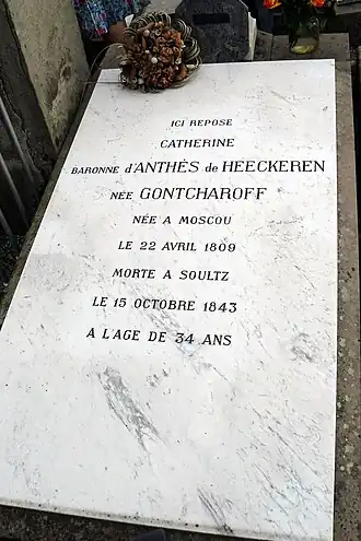 Catharina overleed enkele weken na de geboorte van haar zoon, op 15 oktober 1843, aan zwangerschapskoorts. Zij werd begraven in het familiegraaf van de d'Anthès' te Soultz.
