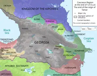De andere belangrijke figuur uit de Georgische gouden eeuw was de achterkleindochter van David, koningin Tamar, die vanaf 1184 bijna dertig jaar regeerde. Tamar breidde Georgië verder uit met vooral moslimgebieden in het oosten en zuidwesten en zette na de Val van Constantinopel het keizerrijk Trebizonde op als vazalstaat. In haar opdracht schreef Sjota Roestaveli het Georgische nationale epos 'De ridder in het pantervel'. Het koninkrijk Georgië bereikte rond 1200 zijn hoogtepunt van territoriale omvang en invloedssfeer.