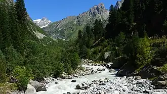 Georgië ligt in de Zuidelijke Kaukasus op het grensvlak van Europa en Azië,[36][37] die in dit gebied meestal wordt gedefinieerd als de waterscheiding van de Grote Kaukasus. Dit gebergte vormt tevens de noordelijke begrenzing van Georgië. Het grootste deel van het land ligt daarmee in Azië, maar een klein gedeelte ligt ten noorden van deze waterscheiding en ligt dus in Europa. Dit betreft de historische regio's Chevi (gemeente Kazbegi), Chevsoeretië en Toesjeti. Om historische, culturele en politieke redenen wordt Georgië tot Europa gerekend, waar het land zich ook uitdrukkelijk mee identificeert.[38][39]