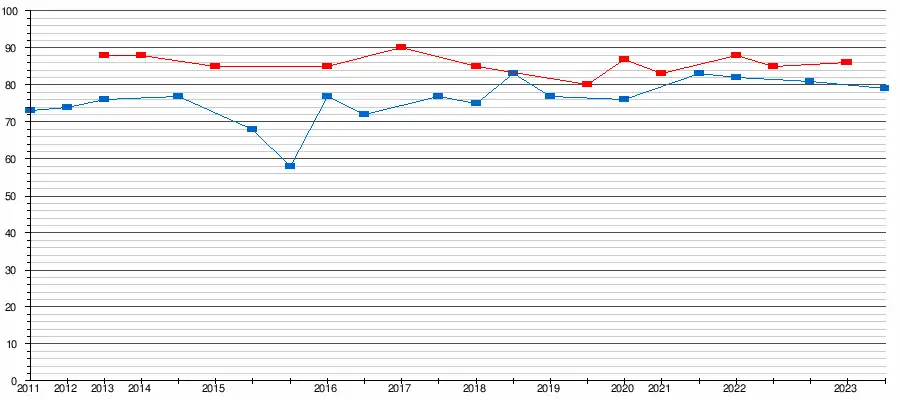 Opmerking: Vanwege het beperkte aantal datapunten in deze grafiek is circa de helft van de beschikbare data sinds 2011 weergegeven.