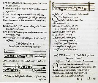 Een ander populair humanistisch leermiddel dat Macropedius toepaste, was het spelen van Latijnse toneelstukken. Eigenaardig genoeg zeggen de bekendste humanistische theoretici uit die tijd, Erasmus en Vives, er niets over. Het toneelspelen werd met name gepropageerd door rectoren van scholen. Velen van hen schreven de toneelstukken zelf, zoals Petrus Nannius, rector in Alkmaar, Willem de Volder, rector in 's-Gravenhage, Cornelius Schonaeus, rector in Haarlem, en ten slotte Macropedius en zijn opvolger in Utrecht, Cornelius Laurimanus.[29] Macropedius motiveerde het toneelspelen – en dan vooral van komedies – aldus:[30]