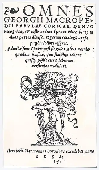 - ↑ a b Jan Bloemendal, Introduction (to: The Latin Playwright Georgius Macropedius (1487–1558) in European Contexts) (2009). Geraadpleegd op 6 oktober 2024.