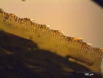 Gerand haarmos verschilt van andere haarmossen door de vrij brede, doorschijnende bladrand, met karakteristieke tandjes.