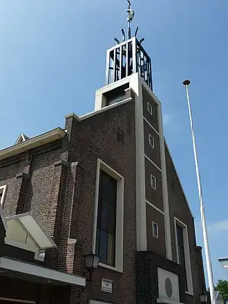 Op deze plaats stond sedert 1856 een kerk van de Christelijke Afgescheiden Gemeente die later verder ging als Christelijke Gereformeerde Kerk. In 1878 werd een nieuw kerkgebouw in gebruik genomen dat werd ontworpen door S. Wzn. Wierda. Ook werd toen een orgel geplaatst, vervaardigd door Van Dam.