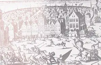 Deze religieus geïnspireerde opstand van andersdenkenden was gericht tegen de Katholieke Kerk en gebeurde op 22 augustus. Hierbij werden, evenals in andere gemeenten, tal van kerken geplunderd. Er vielen veel slachtoffers.