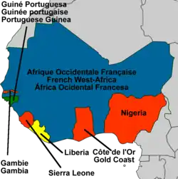 Dankzij veldartillerie en snelvuurgeweren konden de Europese staten in de loop van de 19e eeuw het verzet van de Afrikaanse staten breken. In 1861 bezette Engeland Lagos en begon met de verovering van het kalifaat van Sokoto. Tijdens de Koloniale Conferentie van Berlijn (1884-1885) werd Afrika verdeeld tussen de Europese staten. Frankrijk kreeg het grootste grondgebied (Frans West-Afrika), Groot-Brittannië kreeg Gambia, Sierra Leone, Goudkust (Ghana) en Nigeria, Duitsland Togo en Portugal Guinee-Bissau. Er werden nieuwe, winstgevende gewassen verbouwd, als rubber en cacao.