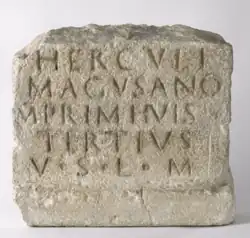 - ↑ Onderstuk van een altaarsteen gewijd aan Hercules Magusanus, vindplaats strand Westkapelle. Zeeuws Museum. Gearchiveerd op 12 december 2022. Geraadpleegd op 19 november 2021.