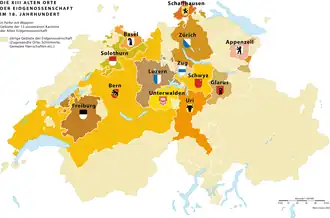 Confederatie van de VIII kantons (1332–1481) Franse periode en restauratie Bondsstaat |