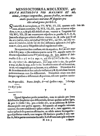 Leibniz zat een beetje in over zijn gebruik van infinitesimalen. Omdat dit begrip niet goed gedefinieerd was, wist hij dat het veel kritiek op zou leveren. Dus in de eerste publicatie van de analyse introduceerde hij als een willekeurig eindig lijnstuk. Hij publiceerde dit artikel in 1684 in de Acta Eruditorum, een wetenschappelijk tijdschrift waar hij zelf aan meewerkte. Dit artikel draagt de lange titel: Nova Methodus pro Maximis et Minimis, itemque tangentibus, qua nec fractas, nex irrationales quantitates moratur, et singulare pro illi calculi genus