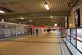 De voormalige overgang tussen het stationsgebied en Hoog Catharijne uit 1973 in april 2006 -