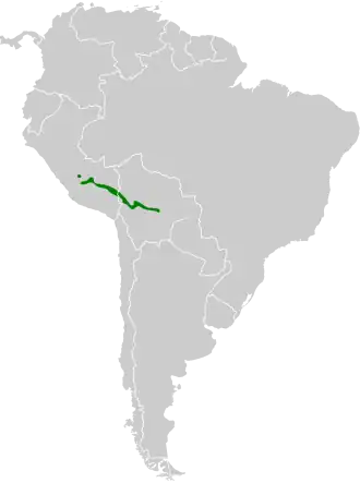 Deze soort komt voor in Peru en Bolivia en telt twee ondersoorten:[2]