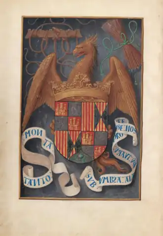 De wapens van de eerste eigenaar, Isabella I van Castilië, zijn afgebeeld op de titelbladzijde van het handschrift. De overlijdensdatum van Isabella geeft dan ook een terminus ante quem voor het boek. Het handschrift zou haar geschonken zijn in door Francisco de Rojas, de Spaanse ambassadeur in Vlaanderen, ter gelegenheid van het dubbel-huwelijk van haar zoon en dochter met de kinderen van Maximiliaan van Oostenrijk in 1496. Er zijn ook onderzoekers die van mening zijn dat het een geschenk was van haar dochter Johanna de Waanzinnige die tussen 1497 en 1504 in Vlaanderen verbleef.[2]